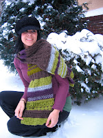Thank you Anodyne communityKNITTERS! Here is the completed second scarf modeled by communityKNIT creator, Michelle. This project started out BIG with 63 stitches casted on and ended up at about 5.5 feet long. It's basically a warm shawl and a great conversation piece for the person who bids the highest on it this Spring when we auction off ten communityKNIT scarves created by the many hands within the Twin Cities.